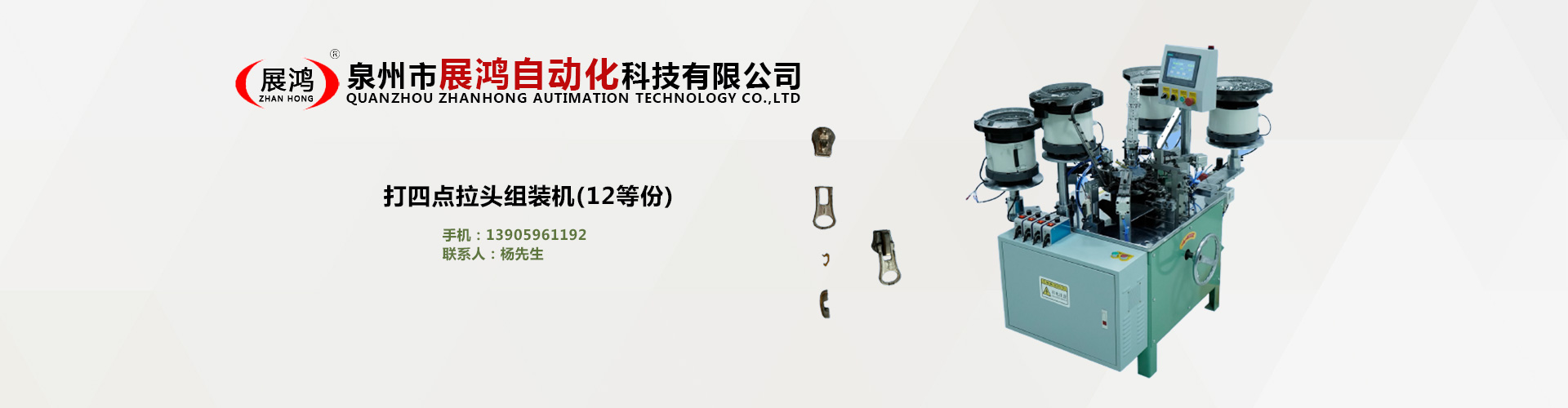 ??泉州市展鴻自動(dòng)化科技有限公司始創(chuàng)于2003年,是一個(gè)集研發(fā)、制造、銷(xiāo)售為一體的現(xiàn)代化公司,專(zhuān)業(yè)從事研發(fā)、生產(chǎn)各類(lèi)型號(hào)的全自動(dòng)拉鏈頭裝配機(jī)。泉州市展鴻自動(dòng)化科技有限公司始創(chuàng)于2003年,是一家集研發(fā)、生產(chǎn)、銷(xiāo)售、服務(wù)于一體的現(xiàn)代化拉鏈頭設(shè)備智能制造生產(chǎn)企業(yè):專(zhuān)業(yè)從事研發(fā)、生產(chǎn)各類(lèi)型號(hào)的全自動(dòng)拉鏈頭智能裝配機(jī)。亦可根據(jù)不同客戶的需求,提供適合客戶自身需要的“私人定制”式專(zhuān)用拉鏈頭設(shè)備及自動(dòng)檢測(cè)拉頭品質(zhì)一體機(jī)。泉州市展鴻自動(dòng)化科技有限公司始創(chuàng)于2003年,是一家集研發(fā)、生產(chǎn)、銷(xiāo)售、服務(wù)于一體的現(xiàn)代化拉鏈頭設(shè)備智能制造生產(chǎn)企業(yè):專(zhuān)業(yè)從事研發(fā)、生產(chǎn)各類(lèi)型號(hào)的全自動(dòng)拉鏈頭智能裝配機(jī)。亦可根據(jù)不同客戶的需求,提供適合客戶自身需要的“私人定制”式專(zhuān)用拉鏈頭設(shè)備及自動(dòng)檢測(cè)拉頭品質(zhì)一體機(jī)。